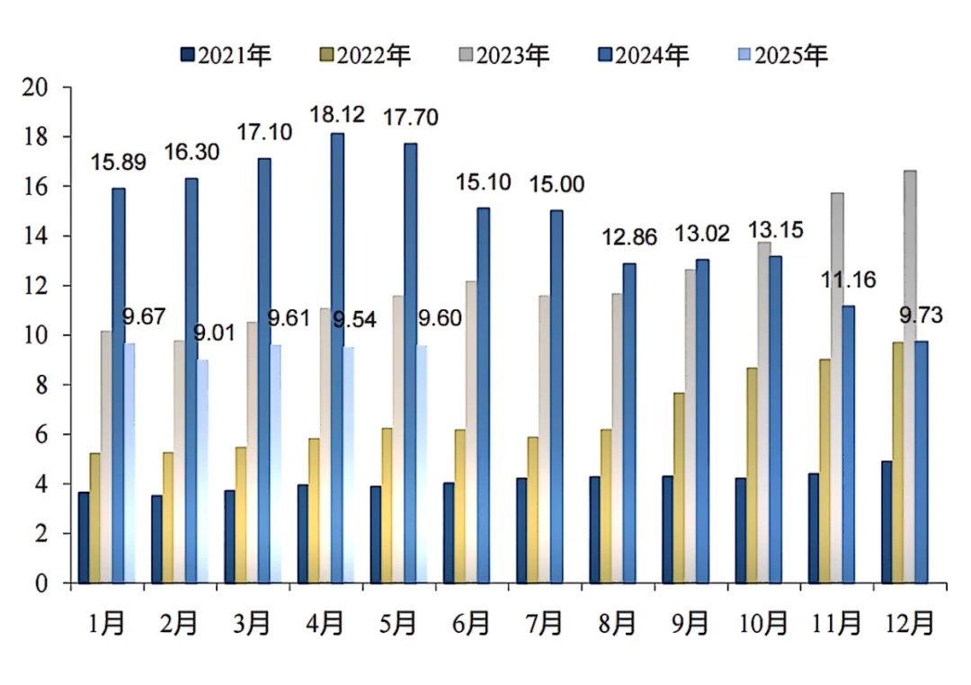 Abbildung: Inländische monatliche Polysiliziumproduktion (10.000 Tonnen)