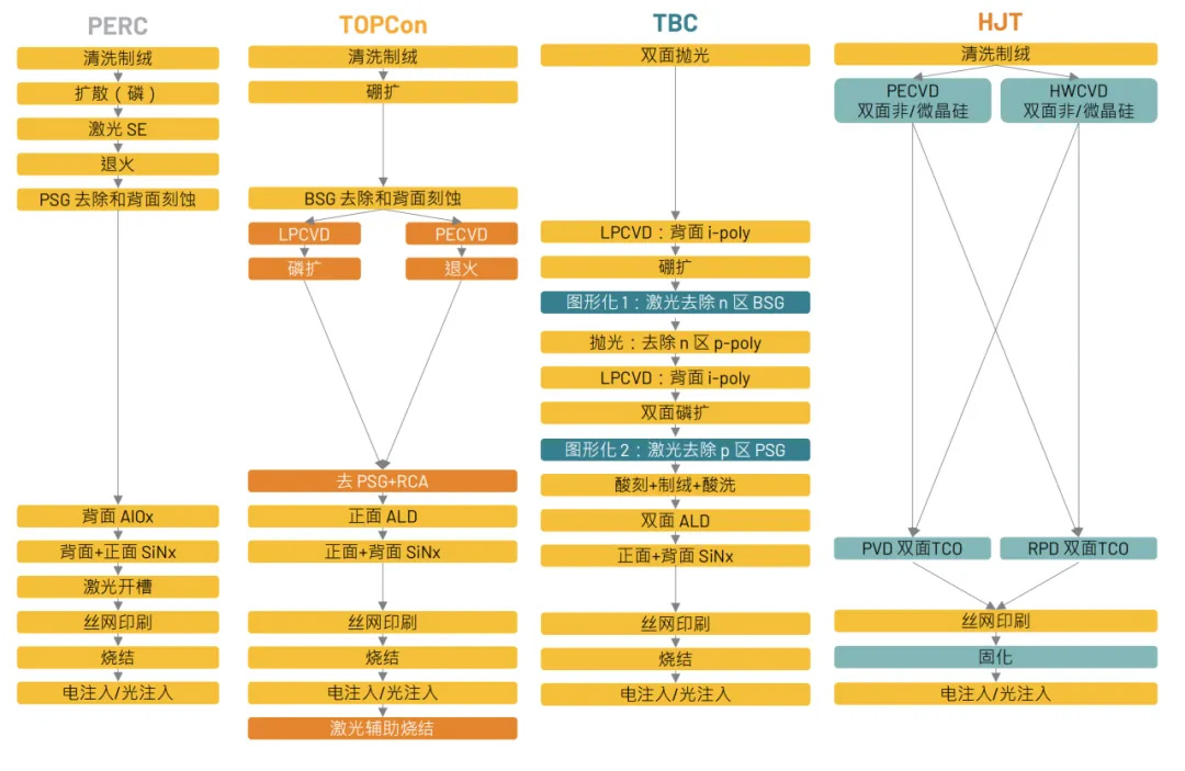 Solarzellen sind ein zentraler Bestandteil der Photovoltaik-Industriekette, und ihr Umwandlungswirkungsgrad wirkt sich direkt auf die Stromerzeugungsleistung von Photovoltaikanlagen aus. Zu den wichtigsten Solarzellentechnologien auf dem Markt zählen derzeit PERC, TOPCon, HJT und xBC. Die theoretischen Obergrenzen des Umwandlungswirkungsgrads variieren je nach Technologiepfad: PERC liegt bei 24,5 %, TOPCon bei 28,7 %, HJT bei 28,5 % und xBC bei 29,1 %. In der Massenproduktion liegt der Umwandlungswirkungsgrad bei PERC bei ca. 24 %, TOPCon bei ca. 26 %, HJT bei ca. 26 % und xBC bei ca. 27 %.
